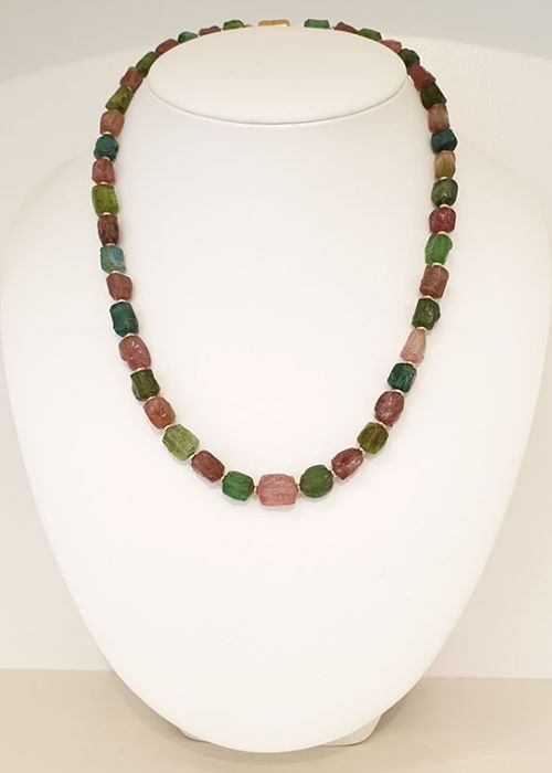 Kette Turmalin Nuggets mit Zwischenteilen Am. Doublé, Länge 50 cm, € 2.480,-